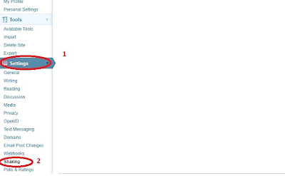 - pertama-tama masuk dulu ke halaman admin wordpress kemudian kalo udah klik setting kemudian klik sharing